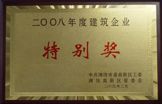 集團(tuán)公司被高新區(qū)黨工委、管委會 授予二〇〇八年度建筑企業(yè)特別獎 (09.02.20)