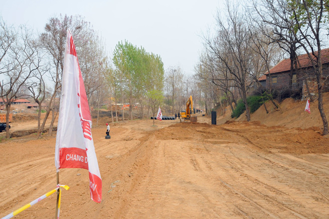 上圖為下游段河邊道路基礎(chǔ)施工進(jìn)行中