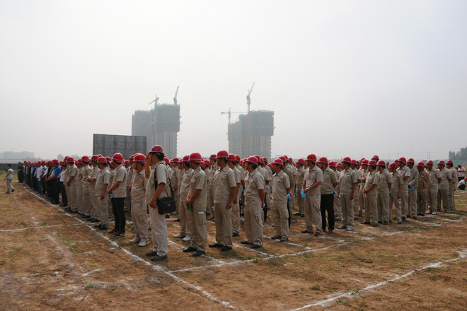為切實推進施工現場消防安全管理,提高全員消防應變能力,以實際行動開展好“六月安全月”活動,2013年6月5日上午,集團公司在高新區中央商務區施工現場組織了大型消防演練活動。來自各基層單位分管生產的經理、工程管理人員,施工現場專職安全員,演練現場三個分公司的全體管理人員和勞務專業隊伍,高新區工程建設、總承包、監理單位以及勞務分包單位代表等近1000人參加了演練活動。