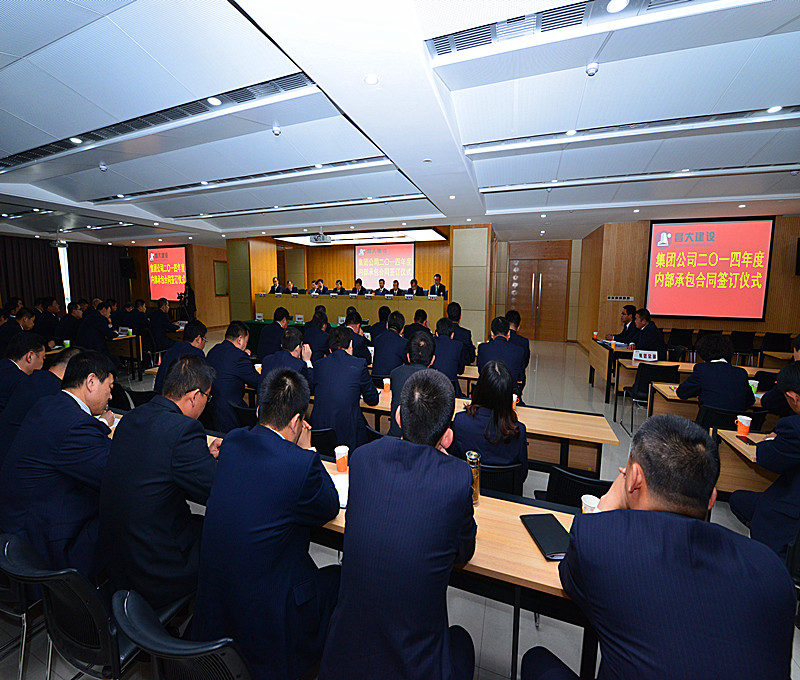 2014年4月19日下午,集團公司2014年度內部承包經營合同簽字儀式在集團辦公樓二樓報告廳舉行。集團公司高管層領導徐鵬強、朱九洲、滕忠斌、李坤明、姜建魯、穆乃杰、張連悅、張學智、閆鵬、劉雁冰,集團總部部門負責人,17個簽約單位及鳶港公司領導班子成員共80余人參加了簽字儀式。 董事長徐鵬強重點強調了三個方面的問題。一是再次強調“集團公司不追求利潤最大化,而是合理利潤條件下為業主提供工程項目的全生命周期服務”的理念。二是再次強調要抓好“市場管理年”活動,快速走出濰坊。三是再次強調集約化、精細化管理向管理要效益的問題。 簽字儀式由集團公司監事會主席、黨委副書記、紀委書記滕忠斌主持。