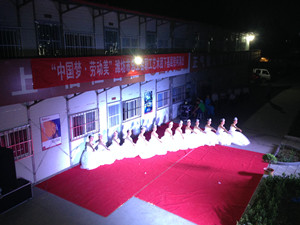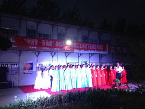 2016年5月27日晚,濰坊市總工會(huì)“中國(guó)夢(mèng)?勞動(dòng)美職工藝術(shù)團(tuán)下基層慰問(wèn)演出”在集團(tuán)自行開(kāi)發(fā)、建設(shè)中的泰和東郡工程現(xiàn)場(chǎng)辦公區(qū)進(jìn)行。演出從晚上七點(diǎn)半開(kāi)始,在一個(gè)半小時(shí)的時(shí)間里,這個(gè)40人的藝術(shù)團(tuán)共演出包括獨(dú)唱、合唱、舞蹈、朗誦等節(jié)目在內(nèi)的12個(gè)節(jié)目。在盛夏即將到來(lái)的夜晚,讓職工藝術(shù)沁潤(rùn)施工現(xiàn)場(chǎng)的勞動(dòng)者。