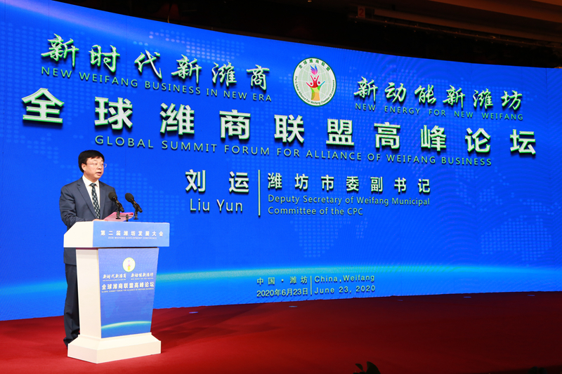 2020年6月23日下午,由濰坊市委、市政府主辦,市工商聯(lián)、市投資合作促進(jìn)局承辦的第二屆濰坊發(fā)展大會全球濰商聯(lián)盟高峰論壇在魯臺會議中心舉行。市委副書記劉運出席并講話,省工商聯(lián)副主席郭建禮和市政協(xié)副主席、市工商聯(lián)主席李士來分別致辭。集團(tuán)總經(jīng)理朱九洲作為市工商聯(lián)副主席出席本次論壇。本次論壇采用線上+線下的方式進(jìn)行,與會嘉賓觀看了濰坊產(chǎn)業(yè)推介宣傳片,部分嘉賓作了交流發(fā)言,并舉行了“濰商回歸”聯(lián)絡(luò)處授牌儀式。 ![]() ![]() |