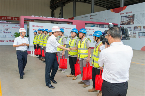 劉運參觀了昌大建科產業園裝配式建筑生產線,慰問一線員工。隨后,在昌大建科二樓會議室組織了座談交流。徐鵬強董事長匯報了昌大集團有關情況,感謝劉運書記親自選定昌大作為包靠企業,表示昌大集團在市委、市政府的正確領導下,各項工作都處在一個高位發展水平上,目前雖然遇到了很多困難,但昌大有信心在市委和市政府的領導下渡過難關并引領全市建筑企業實現高質量發展。昌大建科總經理李飛匯報了昌大建科關于裝配式建筑相關情況。