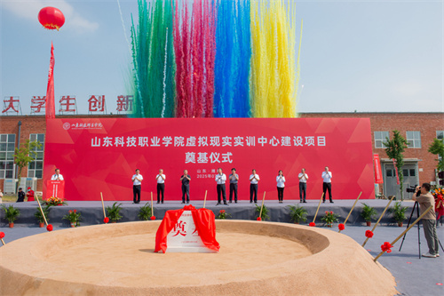 2025年7月17日上午,山東科技職業學院虛擬現實實訓中心項目奠基儀式在項目現場隆重舉行。學院黨委書記鄭德前,集團公司總裁朱九洲,山東省工程咨詢院黨組成員、副院長何健,山東建筑大學設計集團有限公司董事長、總經理李端杰,招商銀行濰坊分行黨委書記、行長潘兆強,學院黨委委員、紀委書記秦建坤,學院黨委委員、副校長徐曉雁、董傳民,學院副校長張振東出席奠基儀式。